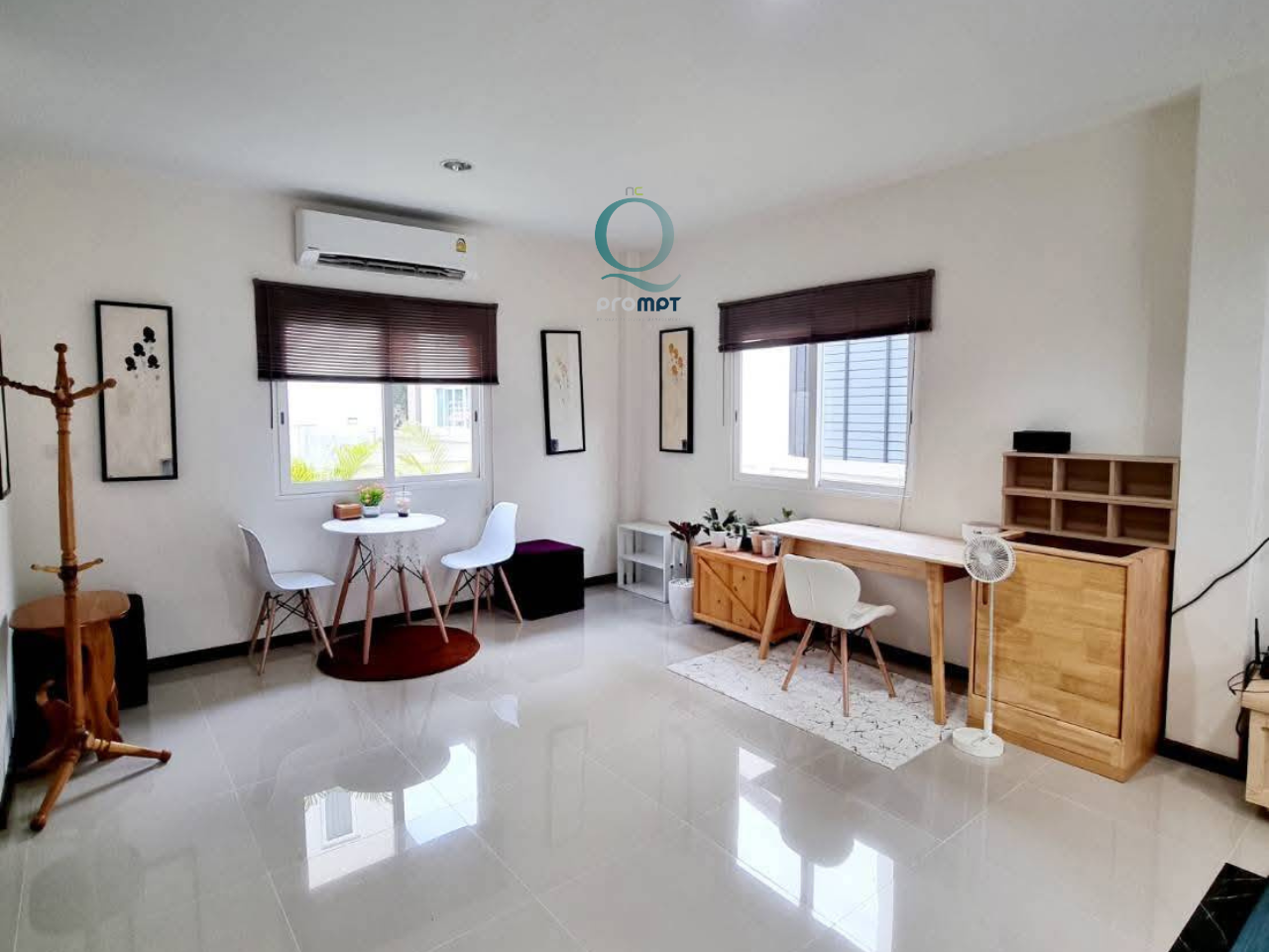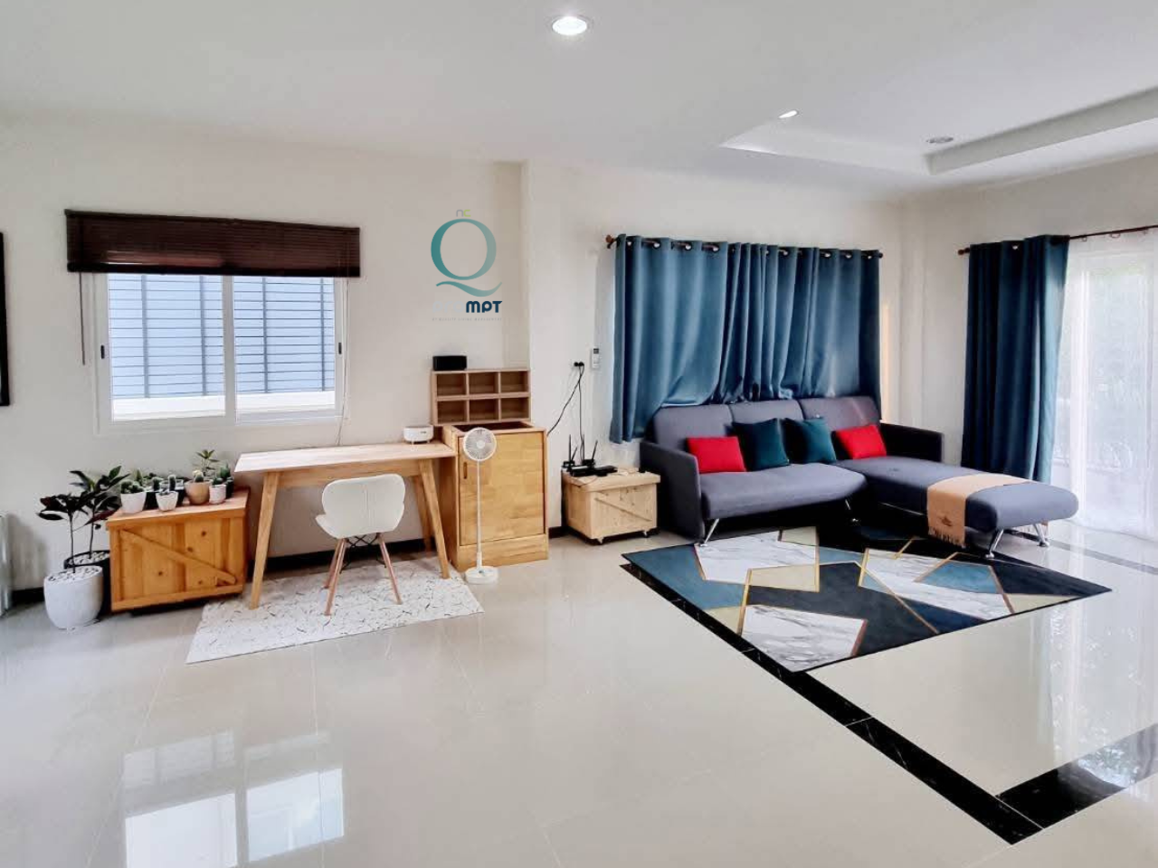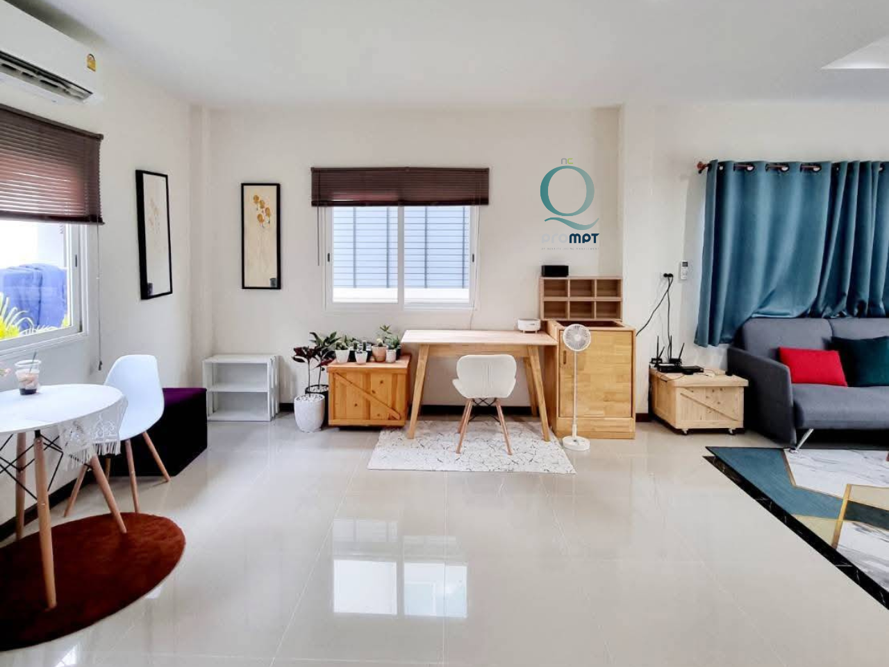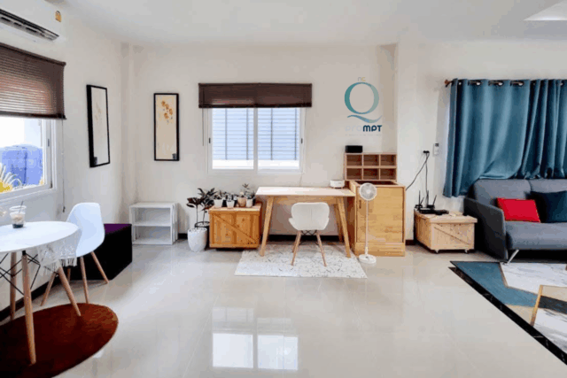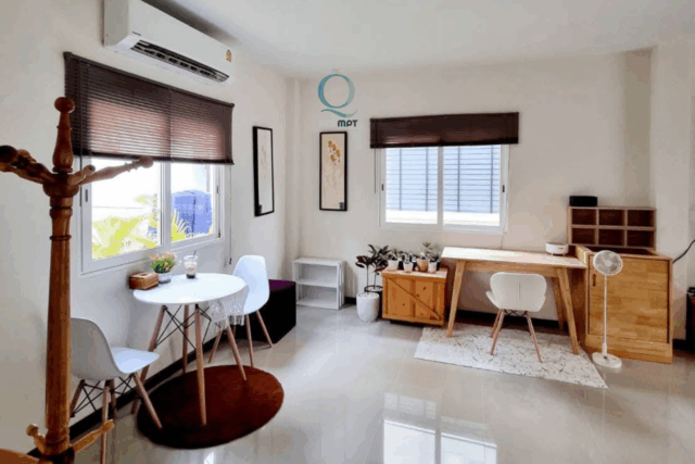 – 3 ห้องนอน, 2 ห้องน้ำ, 1 ห้องนั่งเล่น, 1 ห้องครัว, 1 ที่จอดรถ